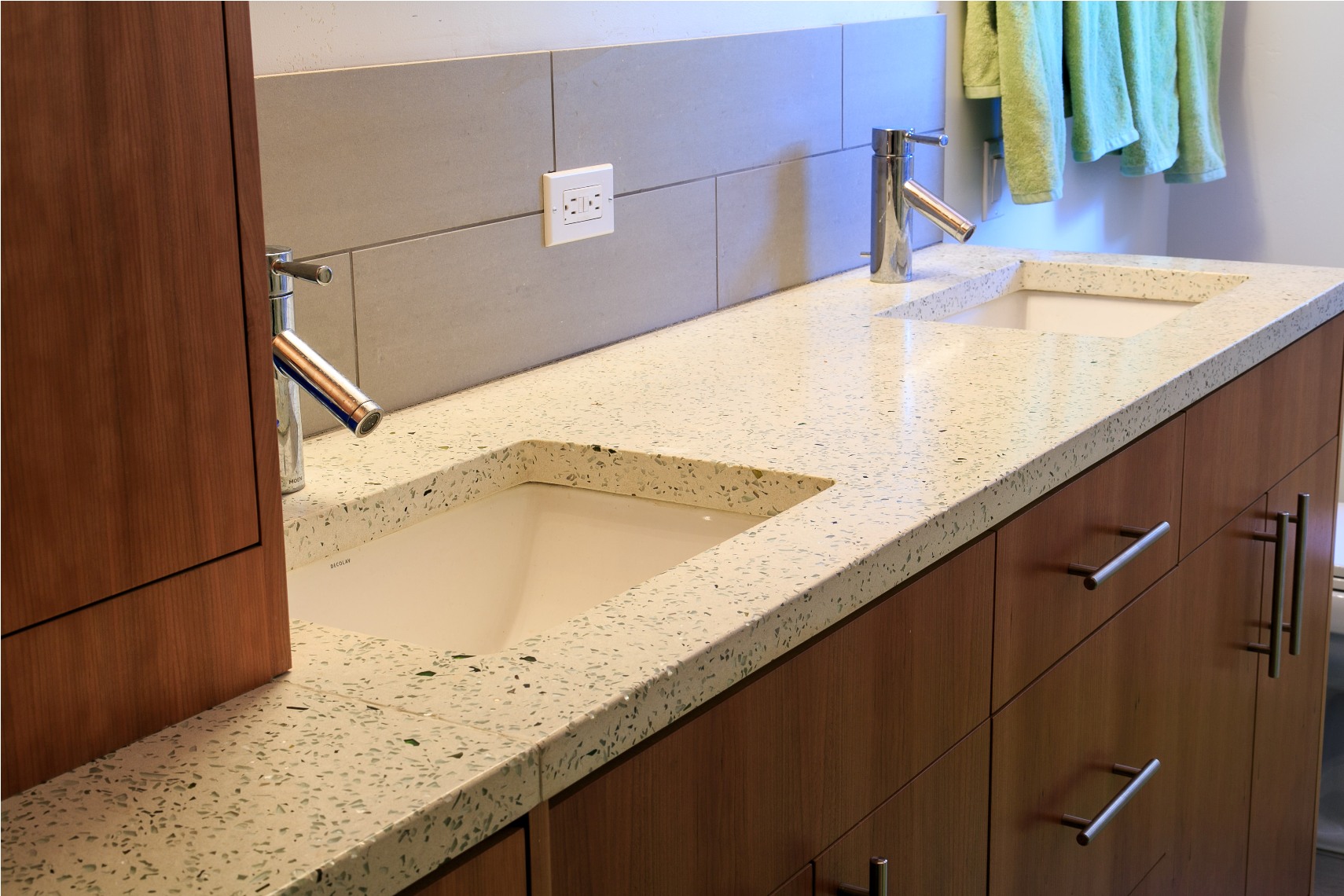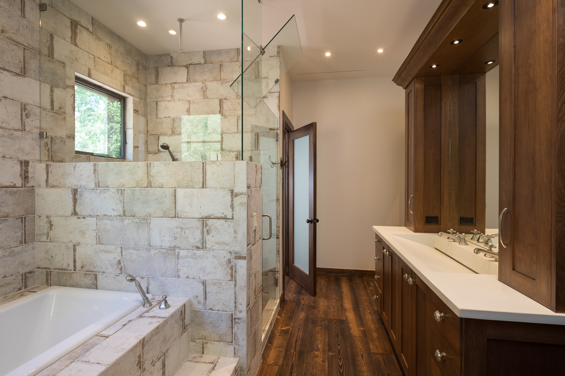 Concrete Bathtub. Bench. Floating Shelves